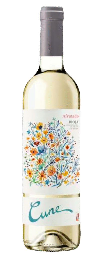 Versión semidulce de un clásico riojanoCune Afrutado Semidulce tiene su origen en viñedos asentados sobre suelos arcillosos con una excelente exposición solar. Elaborado, exclusivamente, a partir del mosto flor de uvas de viura y garnacha en su punto óptimo de sobremaduración, este vino blanco riojano ofrece una gran intensidad aromática de la gama floral, con gratos recuerdos de fruta madura (melocotón, manzana, pera) y una boca sedosa, golosa y larga.Opinión de sus CreadoresCune Afrutado es un vino blanco semidulce de color amarillo pálido con reminiscencias verdosas. Presenta una alta intensidad aromática muy floral, con recuerdos a fruta dulce. En boca su entrada es golosa por el porcentaje de azúcar residual que tiene. Su paso es suave, graso y sedoso, con un final largo y una retronasal afrutada que lo convierte en el vino ideal para combinar con aperitivos, quesos y comida oriental.